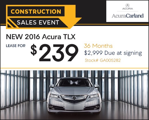 Lease a new 2016 Acura TLX for $239 per month for 36 months. $2,999 due at signing*. The TLX is a great performance luxury sedan. The standard model features jewel eye LED headlights, precision all-wheel steer, and keyless access system.