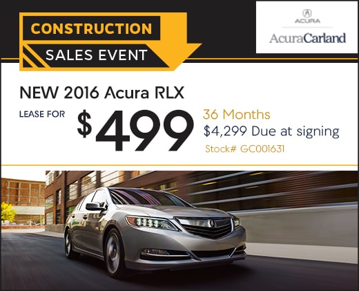 Lease a new 2016 Acura RLX for $499 per month for 36 months. $4,299 due at signing***. The RLX comes with 6-speed sequential SportShift automatic, multi-view rear camera and collision mitigation braking system standard.