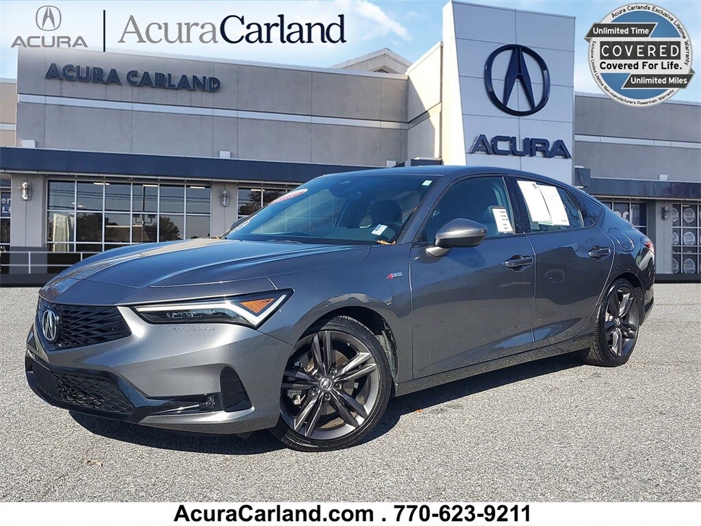 2024 ACURA INTEGRA A-SPEC PKG***ACURA CERTIFIED W/ 100K WARRANTY***POWER MONROOF***HEATED LEATHER SEATS***LANE DEPARTURE WARNING***APPLE CAR PLAY***SPOILER***ALLOY WHEELS***SPOILER***FOG LIGHTS***POWER DRIVER SEAT***LOCAL ACURA TRADE***CLEAN CARFAX!! Certified. Odometer is 10299 miles below market average! CARFAX One-Owner. Acura Carland is pleased to present this 2024 Acura Integra A-Spec Package in Liquid Carbon Metallic, Beautifully equipped with Integra A-Spec Package, 4D Hatchback, 1.5L I4 DOHC 16V, CVT, FWD, Liquid Carbon Metallic, 18" Aluminum Alloy Wheels, Apple CarPlay/Android Auto, Front fog lights, Heated front seats, Lane departure: Lane Keeping Assist System (LKAS) active, Leatherette-Trimmed Seating Surfaces, Power driver seat, Power moonroof, Spoiler, 4-Wheel Disc Brakes, 8 Speakers, ABS brakes, Air Conditioning, Alloy wheels, AM/FM radio, Auto High-beam Headlights, Auto-dimming Rear-View mirror, Automatic temperature control, Brake assist, Bumpers: body-color, Compass, Delay-off headlights, Driver door bin, Driver vanity mirror, Dual front impact airbags, Dual front side impact airbags, Electronic Stability Control, Four wheel independent suspension, Front anti-roll bar, Front Bucket Seats, Front Center Armrest, Front dual zone A/C, Front reading lights, Fully automatic headlights, Heated door mirrors, Heated Front Bucket Seats, Illuminated entry, Knee airbag, Leather Shift Knob, Leather steering wheel, Low tire pressure warning, Occupant sensing airbag, Outside temperature display, Overhead airbag, Overhead console, Panic alarm, Passenger door bin, Passenger vanity mirror, Power door mirrors, Power steering, Power windows, Radio data system, Radio: Acura Premium Audio System, Rear anti-roll bar, Rear seat center armrest, Rear side impact airbag, Rear window defroster, Remote keyless entry, Security system, Speed control, Speed-sensing steering, Speed-Sensitive Wipers, Split folding rear seat, Steering wheel mounted audio controls, Tachometer, Telescoping steering wheel, Tilt steering wheel, Traction control, Trip computer, and Variably intermittent wipers! Enjoy the benefits of the complimentary 3mos/3000mile powertrain warranty on all late model used vehicles up to 150,000 miles! See this and all of our incredible inventory at www.acuracarland.com.