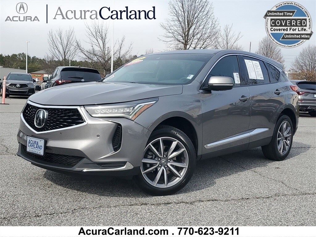 2023 ACURA RDX TECHNOLOGY PKG***ACURA CERTIFIED W/ 100K WARRANTY***POWER MOONROOF***HEATED LEATHER SEATS***NAVIGATION***POWER LIFTGATE***LANE DEPARTURE WARNING***XM SATELLITE RADIO***APPLE CAR PLAY***DUAL POWER SEATS***SPOILER***19" ALLOY WHEELS***ONE OWNER***CLEAN CARFAX!! Certified. Odometer is 8775 miles below market average! CARFAX One-Owner. Clean CARFAX. Acura Carland is pleased to present this 2023 Acura RDX Technology Package in Liquid Carbon Metallic, Beautifully equipped with AM/FM radio: SiriusXM, Apple CarPlay/Android Auto, Auto High-beam Headlights, Heated Front Sport Seats, Lane departure: Lane Keeping Assist System (LKAS) active, Memory seat, Navigation system: Acura Navigation System with 3D View, Perforated Milano Premium Leather-Trimmed Interior, Power driver seat, Power Liftgate, Power moonroof, Power passenger seat, Spoiler, Wheels: 19" x 8.0J Pewter Gray Multi-Spoke, 12 Speakers, 4-Wheel Disc Brakes, 4.17 Axle Ratio, ABS brakes, Air Conditioning, Alloy wheels, Auto-dimming Rear-View mirror, Automatic temperature control, Brake assist, Bumpers: body-color, Compass, Delay-off headlights, Driver door bin, Driver vanity mirror, Dual front impact airbags, Dual front side impact airbags, Electronic Stability Control, Emergency communication system: AcuraLink, Exterior Parking Camera Rear, Four wheel independent suspension, Front anti-roll bar, Front Bucket Seats, Front Center Armrest, Front dual zone A/C, Front reading lights, Fully automatic headlights, Garage door transmitter: HomeLink, Heated door mirrors, Heated front seats, Illuminated entry, Knee airbag, Low tire pressure warning, Occupant sensing airbag, Outside temperature display, Overhead airbag, Overhead console, Panic alarm, Passenger door bin, Passenger vanity mirror, Power door mirrors, Power steering, Power windows, Premium audio system: ELS Studio, Radio data system, Radio: ELS Studio Premium Audio System, Rear anti-roll bar, Rear reading lights, Rear seat center armrest, Rear window defroster, Rear window wiper, Remote keyless entry, Security system, Speed control, Speed-sensing steering, Split folding rear seat, Steering wheel mounted audio controls, Tachometer, Telescoping steering wheel, Tilt steering wheel, Traction control, Trip computer, Turn signal indicator mirrors, Variably intermittent wipers, and Wheels: 19" Glint Black Alloy! Enjoy the benefits of the complimentary 3mos/3000mile powertrain warranty on all late model used vehicles up to 150,000 miles! See this and all of our incredible inventory at www.acuracarland.com.