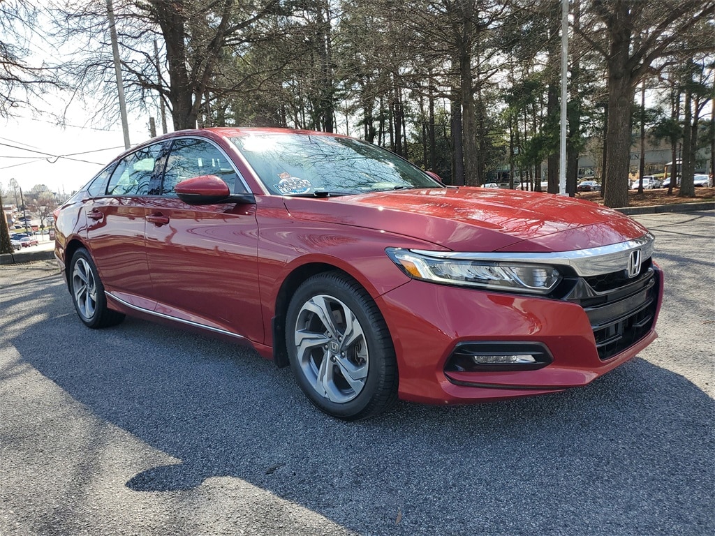 CARFAX One-Owner. Clean CARFAX. Acura Carland is pleased to present this 2018 Honda Accord EX-L 2.0T in Radiant Red Metallic, Beautifully equipped with Accord EX-L 2.0T, 4D Sedan, I4 DOHC 16V Turbocharged, 10-Speed Automatic, FWD, Radiant Red Metallic, 10 Speakers, 17" Machine-Finished Alloy Wheels, 4-Wheel Disc Brakes, ABS brakes, Air Conditioning, Alloy wheels, AM/FM radio: SiriusXM, Apple CarPlay/Android Auto, Auto High-beam Headlights, Auto-dimming Rear-View mirror, Automatic temperature control, Blind Spot Information (BSI) System warning, Brake assist, Bumpers: body-color, Delay-off headlights, Driver door bin, Driver vanity mirror, Dual front impact airbags, Dual front side impact airbags, Electronic Stability Control, Emergency communication system: HondaLink, Exterior Parking Camera Rear, Four wheel independent suspension, Front anti-roll bar, Front Bucket Seats, Front Center Armrest, Front dual zone A/C, Front fog lights, Front reading lights, Fully automatic headlights, Garage door transmitter: HomeLink, Heated door mirrors, Heated Front Bucket Seats, Heated front seats, Illuminated entry, Knee airbag, Leather Shift Knob, Leather steering wheel, Leather-Trimmed Seats, Low tire pressure warning, Memory seat, Occupant sensing airbag, Outside temperature display, Overhead airbag, Overhead console, Panic alarm, Passenger door bin, Passenger vanity mirror, Power door mirrors, Power driver seat, Power moonroof, Power passenger seat, Power steering, Power windows, Radio data system, Radio: 450-Watt AM/FM/HD Premium Audio System, Rear anti-roll bar, Rear seat center armrest, Rear window defroster, Remote keyless entry, Security system, Speed control, Speed-sensing steering, Speed-Sensitive Wipers, Split folding rear seat, Steering wheel mounted audio controls, Tachometer, Telescoping steering wheel, Tilt steering wheel, Traction control, Trip computer, Turn signal indicator mirrors, and Variably intermittent wipers! Enjoy the benefits of the complimentary 3mos/3000mile powertrain warranty on all late model used vehicles up to 150,000 miles! See this and all of our incredible inventory at www.acuracarland.com.