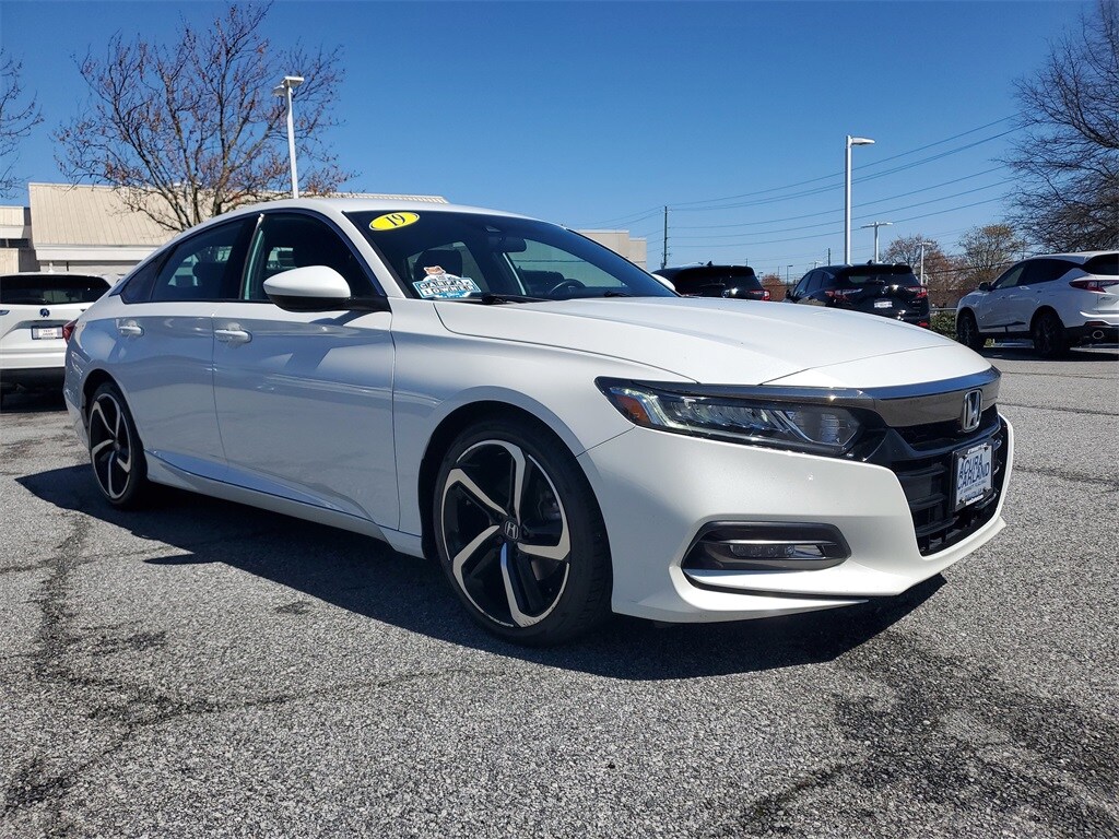 CARFAX One-Owner. Acura Carland is pleased to present this 2019 Honda Accord Sport in Platinum White Pearl, Beautifully equipped with Accord Sport, 4D Sedan, 1.5T I4 DOHC 16V Turbocharged VTEC, FWD, Platinum White Pearl, 4-Wheel Disc Brakes, 8 Speakers, ABS brakes, Air Conditioning, Alloy wheels, AM/FM radio, Apple CarPlay/Android Auto, Auto High-beam Headlights, Automatic temperature control, Brake assist, Bumpers: body-color, Cloth Seat Trim, Delay-off headlights, Driver door bin, Driver vanity mirror, Dual front impact airbags, Dual front side impact airbags, Electronic Stability Control, Emergency communication system: HondaLink, Exterior Parking Camera Rear, Forward collision: Collision Mitigation Braking System (CMBS) + FCW mitigation, Four wheel independent suspension, Front anti-roll bar, Front Bucket Seats, Front Center Armrest, Front dual zone A/C, Front fog lights, Front reading lights, Fully automatic headlights, Illuminated entry, Knee airbag, Leather Shift Knob, Leather steering wheel, Low tire pressure warning, Occupant sensing airbag, Outside temperature display, Overhead airbag, Overhead console, Panic alarm, Passenger door bin, Passenger vanity mirror, Power door mirrors, Power driver seat, Power steering, Power windows, Radio data system, Radio: 180-Watt AM/FM Audio System, Rear anti-roll bar, Rear seat center armrest, Rear window defroster, Remote keyless entry, Security system, Speed control, Speed-sensing steering, Speed-Sensitive Wipers, Split folding rear seat, Spoiler, Steering wheel mounted audio controls, Tachometer, Telescoping steering wheel, Tilt steering wheel, Traction control, Trip computer, Variably intermittent wipers, and Wheels: 19" Machine-Finished Alloy w/Black Inserts! Enjoy the benefits of the complimentary 3mos/3000mile powertrain warranty on all late model used vehicles up to 150,000 miles! See this and all of our incredible inventory at www.acuracarland.com.