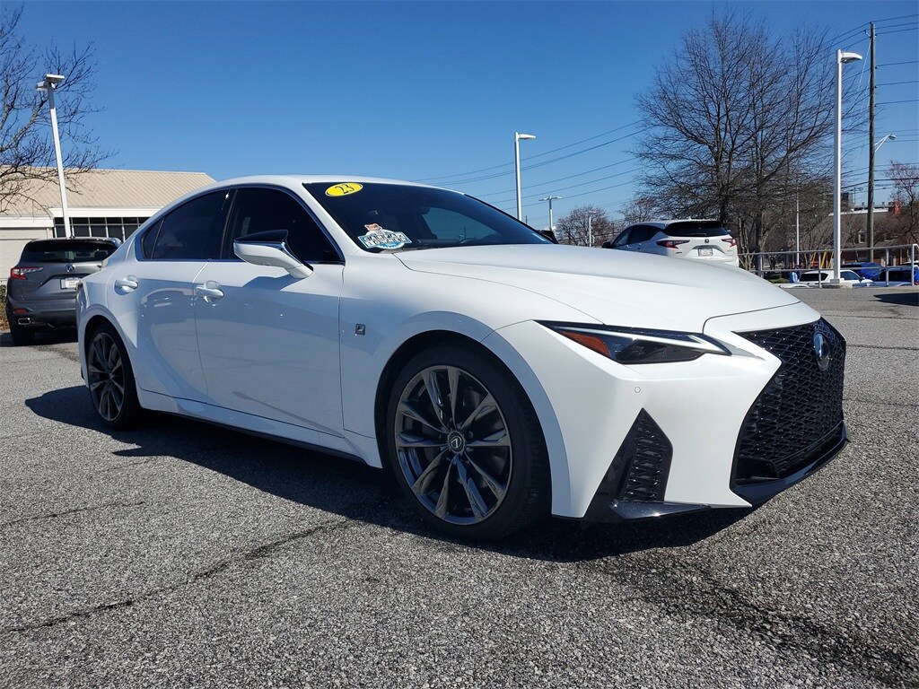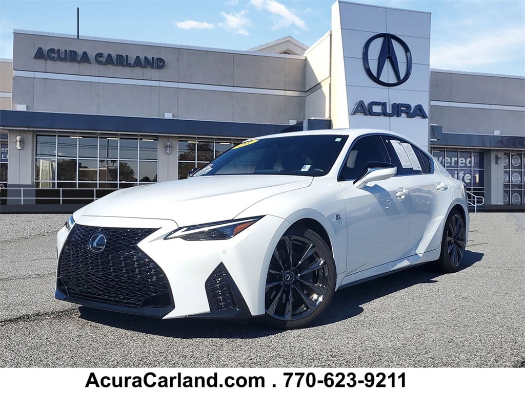 CARFAX One-Owner. Acura Carland is pleased to present this 2023 Lexus IS 350 F SPORT in Ultra White, Beautifully equipped with IS 350 F SPORT, 4D Sedan, 3.5L V6 DOHC Dual VVT-i 24V, 8-Speed Automatic, RWD, Ultra White, 10 Speakers, 4-Wheel Disc Brakes, ABS brakes, Air Conditioning, Alloy wheels, AM/FM radio: SiriusXM, Apple CarPlay/Android Auto, Auto High-beam Headlights, Auto-dimming door mirrors, Auto-dimming Rear-View mirror, Automatic temperature control, Brake assist, Bumpers: body-color, CD player, Compass, Delay-off headlights, Driver door bin, Driver vanity mirror, Dual front impact airbags, Dual front side impact airbags, Electronic Stability Control, Emergency communication system: Safety Connect (3-year trial), Exterior Parking Camera Rear, Four wheel independent suspension, Front anti-roll bar, Front Bucket Seats, Front Center Armrest, Front dual zone A/C, Front fog lights, Front reading lights, Fully automatic headlights, Garage door transmitter: HomeLink, Heated & Ventilated F SPORT Seats, Heated door mirrors, Heated front seats, Heated steering wheel, Illuminated entry, Knee airbag, Leather Shift Knob, Low tire pressure warning, Occupant sensing airbag, Outside temperature display, Overhead airbag, Overhead console, Panic alarm, Passenger door bin, Passenger vanity mirror, Perforated NuLuxe Seat Trim, Power door mirrors, Power driver seat, Power passenger seat, Power steering, Power windows, Radio data system, Radio: Multimedia System w/8" Color Touchscreen, Rain sensing wipers, Rear anti-roll bar, Rear reading lights, Rear seat center armrest, Rear side impact airbag, Rear window defroster, Remote keyless entry, Security system, Speed control, Speed-sensing steering, Speed-Sensitive Wipers, Split folding rear seat, Spoiler, Sport steering wheel, Steering wheel mounted audio controls, Tachometer, Telescoping steering wheel, Tilt steering wheel, Traction control, Trip computer, Turn signal indicator mirrors, Variably intermittent wipers, and Ventilated front seats! Enjoy the benefits of the complimentary 3mos/3000mile powertrain warranty on all late model used vehicles up to 150,000 miles! See this and all of our incredible inventory at www.acuracarland.com.